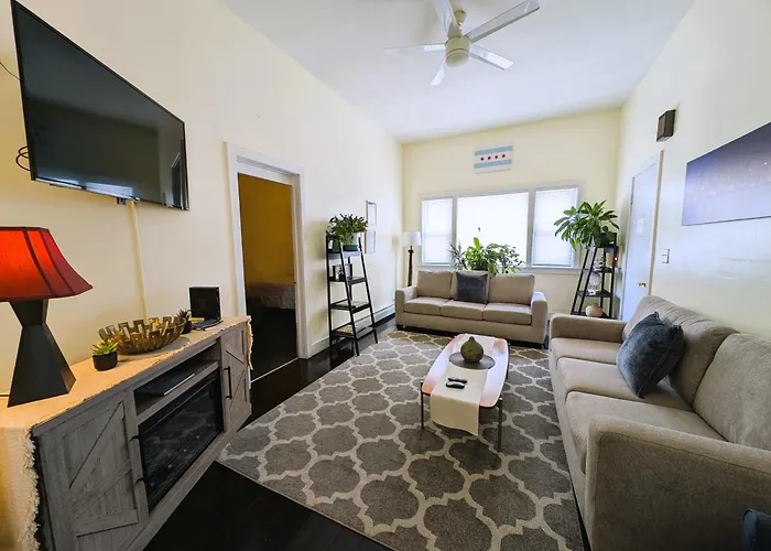 De 6-kamer The Avondale Guesthouse Chicago villa ligt op 6 minuten lopen van Hungry Brain en biedt snelle toegang tot bezienswaardigheden in de buurt. Het vakantiehuis ligt op 4 km van het Natuurmuseum Peggy Notebaert en beschikt over een terras met uitzicht op de straat.
